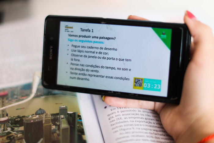 Cristina acrescenta que, com a autorização dos pais ou responsáveis, o aluno foi até o colégio, instalou o aplicativo das aulas em conjunto com os professores e recebeu o aparelho.