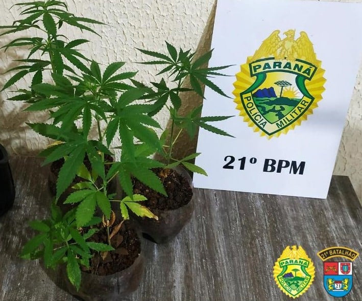 No local, os policiais visualizaram três potes com cinco pés de maconha plantados nos fundos de um terreno vizinho. Foi entrado em contato com o proprietário do imóvel, o qual informou ser usuário e que estava cultivando para seu consumo. O homem e proprietário das plantas foram conduzidos junto com a droga apreendida para a Delegacia de Polícia Civil.