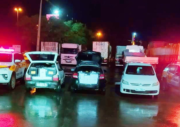 Quando o primeiro carro foi abordado pelos policiais, os demais condutores retornaram fazendo manobras perigosas, dando início ao acompanhamento tático. Os dois veículos adentraram em uma estrada sem saída e os motoristas acabaram abandonando os carros, fugindo a pé para uma área de mata, não sendo mais localizados.