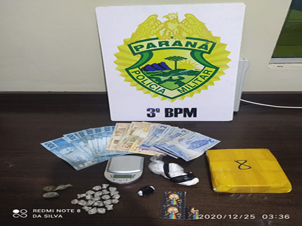 Em patrulhamento no bairro Santa Terezinha, a PM visualizou uma motocicleta sem placas e com escapamento alterado, ainda, em alta velocidade na rua Guarani. Efetuou acompanhamento, abordagem e apreendeu 565 gramas de Cocaína,61 pontos de LCD, 22 comprimidos de ecstasy, 2,5g de Maconha, motocicleta e bicicleta.