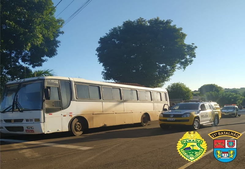 Depois da abordagem e identificação, a PM constatou que o indivíduo estava embriagado, o etilômetro aferiu 0,45mg/l, bem como, que o mesmo estava apresentando versões desconexas sobre a origem do ônibus. Os militares iniciaram diligências no intuito de identificar o proprietário do veículo, chegando desta forma ao motorista do veículo. Este, passou a relatar que havia estacionado o referido veículo no pátio de um posto de combustível na cidade de Clevelândia e até o momento do contato não tinha ciência do furto.
