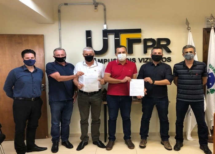 A celebração do acordo contou com um número restrito de pessoas respeitando as recomendações do Comitê COVID da UTFPR. Participaram do ato representando a UTFPR Câmpus Dois Vizinhos o Diretor-Geral, prof. Everton Ricardi Lozano da Silva, o Diretor de Relações Empresariais e Comunitárias, prof. Vicente de Paulo Macedo e o prof. Sérgio Luiz Kuhn e representando a Associação Empresarial de Dois Vizinhos o presidente Rogério Borges Sidral, Adriano Radaelli e Luiz Carlos Peretti. A UTFPR-DV, por meio de convênios como este, reitera o seu compromisso com a promoção do desenvolvimento de Dois Vizinhos e da região.
