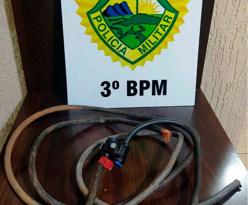 Hoje, dia 18, durante patrulhamento a equipe policial foi informada via central de operações de que 2 indivíduos estariam furtando fios de cobre próximo a um ginásio no bairro Morumbi, município de Pato Branco. A PM se deslocou ao local informado e visualizou os suspeitos ao lado de uma caixa de energia elétrica, sendo dada voz de abordagem e identificado um deles (25), e localizados em sua mochila os fios de cobre extraídos da caixa de energia.