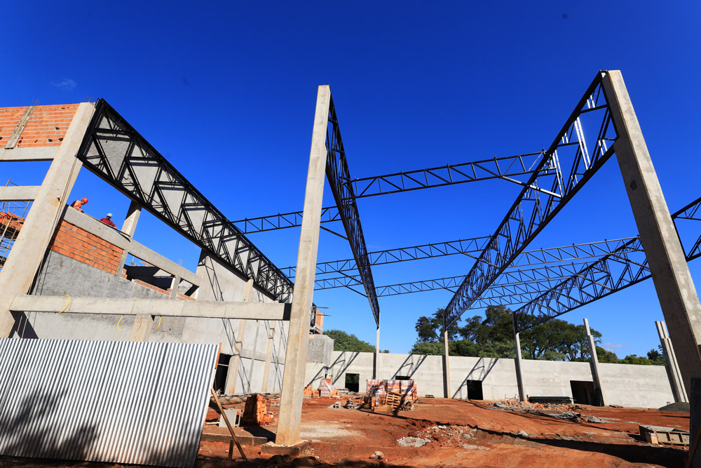 O novo Centro de Eventos no Parque de Exposições de Pato Branco entra em mais uma fase da execução, finalizando a etapa de estrutura da cobertura e telhamento. A obra vem avançando e com a conclusão da cobertura já estará cerca de 45% concluída, sendo viabilizada pela Prefeitura Municipal de Pato Branco, a partir da Secretaria de Desenvolvimento Econômico e fiscalizada pela equipe da Secretaria de Engenharia e Obras.