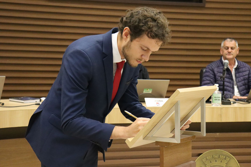 Antes do início oficial da Sessão Ordinária, foi realizado o Ato de Posse para o vereador suplente Marcos Diedrich Junior (União Brasil), que assumiu o lugar do vereador Lindomar Brandão (PP), que está de licença parlamentar não remunerada, por 30 dias – de 7 de setembro a 7 de outubro. Em seu discurso de posse, Marcos agradeceu os vereadores e servidores da Câmara, pela acolhida; aos familiares, presentes no ato; a todos os eleitores, que o apoiaram na campanha, em 2020; e ao vereador Lindomar Brandão, pelo espaço cedido e que havia sido combinado no período de campanha eleitoral.