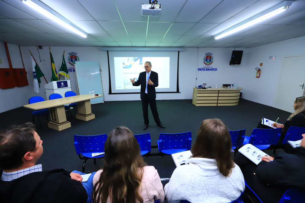 Servidores da Prefeitura de Pato Branco participaram nesta segunda-feira (12) da capacitação sobre obras e serviços de engenharia com ênfase na nova lei de licitações e contratos administrativos número 14.133/2021. O encontro reuniu servidores de todas as Secretarias Municipais de Pato Branco.