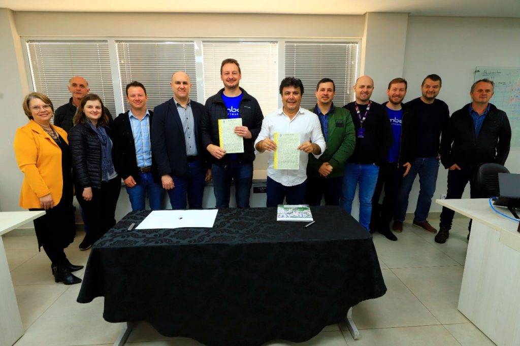 A Prefeitura de Pato Branco realizou, na manhã desta terça-feira (13), a entrega de outorga na escritura pública para a empresa pato-branquense Limber Software, localizada no Centro Tecnológico Industrial do Sudoeste Paranaense (Cetis). O ato, realizado pelas mãos do prefeito, Robson Canto, na empresa, com a presença dos diretores e colaboradores.