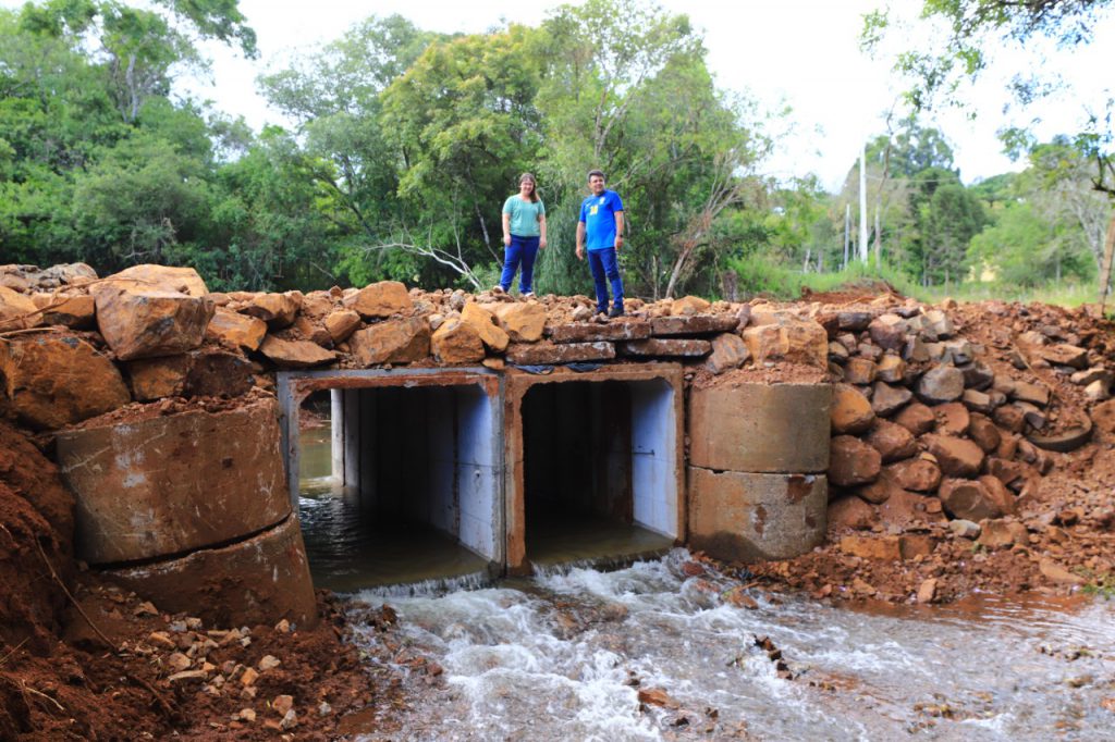 A tubulação de concreto antiga foi destruída com as intensas chuvas que ocorreram em meados de outubro. Os serviços foram realizados pela equipe da Secretaria Municipal de Agricultura, com auxílio da Secretaria de Engenharia e Obras. “Optamos em refazer a estrutura toda, colocando galerias maiores para uma evasão melhor da água, assim evitando que em possíveis enxurradas, a ponte não seja danificada”, destaca a secretária de Agricultura Vanessa Zanon.