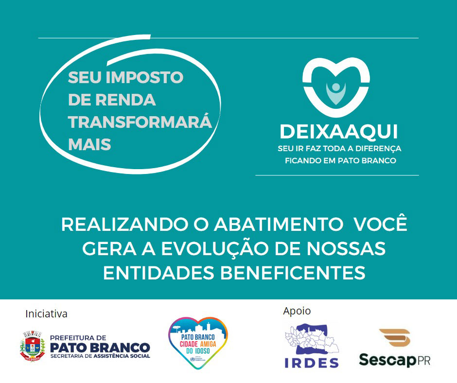 Nesta quinta-feira(8) foi realizado o lançamento do projeto Deixa Aqui. A iniciativa visa destinar recursos para o terceiro setor e amparar as instituições beneficientes do município através do imposto de renda. A campanha é importante para conscientizar a população para, literalmente, deixar em Pato Branco o dinheiro que poderá assistir às entidades locais e favorecer a parcela da sociedade que se encontra em vulnerabilidade social.