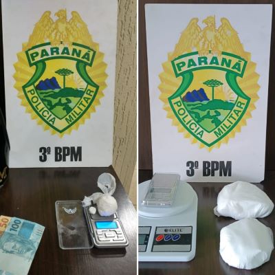 Na mesma data, por volta das 22h50min, a equipe policial militar Rotam, em patrulhamento pelo bairro São Cristóvão, em de Pato Branco, abordou em um estabelecimento comercial. Com um dos abordados (24), localizada uma porção de cocaína e R$ 195,00 em espécie. Em ato contínuo, foi deslocado até a residência do abordado e após realizadas buscas na residência, localizados mais 23 gramas da mesma substância. Os abordados receberam voz de prisão pelo crime de tráfico de drogas e encaminhados juntamente com os entorpecentes apreendidos para as providências da polícia judiciária.