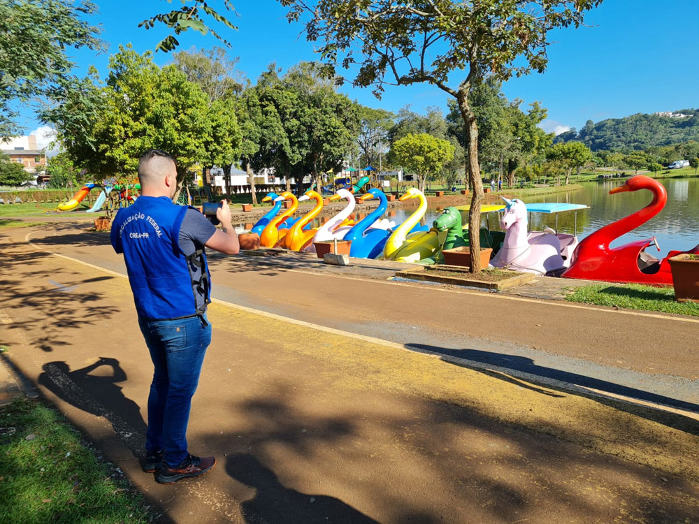 Os parques Alvorada, em Francisco Beltrão, e da Gruta, em Palmas, foram escolhidos para a Fiscalização Integrada de Acessibilidade (FIA), promovida pelo Conselho Regional de Engenharia e Agronomia do Paraná (Crea-PR). A equipe de fiscais do Conselho, acompanhada de representantes de entidades de classe, fez um levantamento dos locais quanto a alguns dos principais tópicos da norma vigente de acessibilidade (ABNT NBR 9050:2020). Os fiscais do Crea-PR verificaram calçadas, estacionamentos, áreas de circulação, sanitários, rampas, barras de proteção, entre outros itens. Em Francisco Beltrão, no dia 27 de abril, a parceria foi com a Associação dos Engenheiros e Arquitetos do Sudoeste do Paraná (Sudenge) e com a Associação de Engenheiros Agrônomos de Francisco Beltrão (AEA-FB); em Palmas, nesta quinta-feira (4) com a Associação dos Engenheiros de Palmas (AEP).