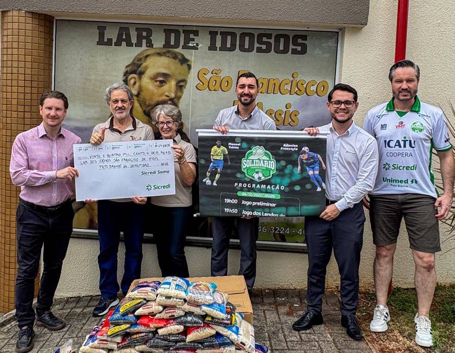 O Solidário Esporte Clube, iniciativa que une o amor pelo esporte ao propósito de contribuir com as causas sociais doou mais de R$ 24 mil e 150 kg de alimentos ao Lar de Idosos São Francisco de Assis, em Pato Branco (PR). O valor foi arrecadado durante o jantar beneficente e um leilão de camisas realizado no último dia 06 de dezembro, que reuniu apaixonados pelo futebol e com o compromisso social. Além do valor em dinheiro e alimentos doados ao Lar de Idosos, o projeto também prevê a doação de kits e tênis para crianças carentes. Ao todo serão beneficiadas mais de 700 crianças no início do próximo ano letivo, quando estas doações devem acontecer. Idealizador do projeto, Fábio Burille, destaca que a iniciativa nasceu com o propósito de ir além do esporte.