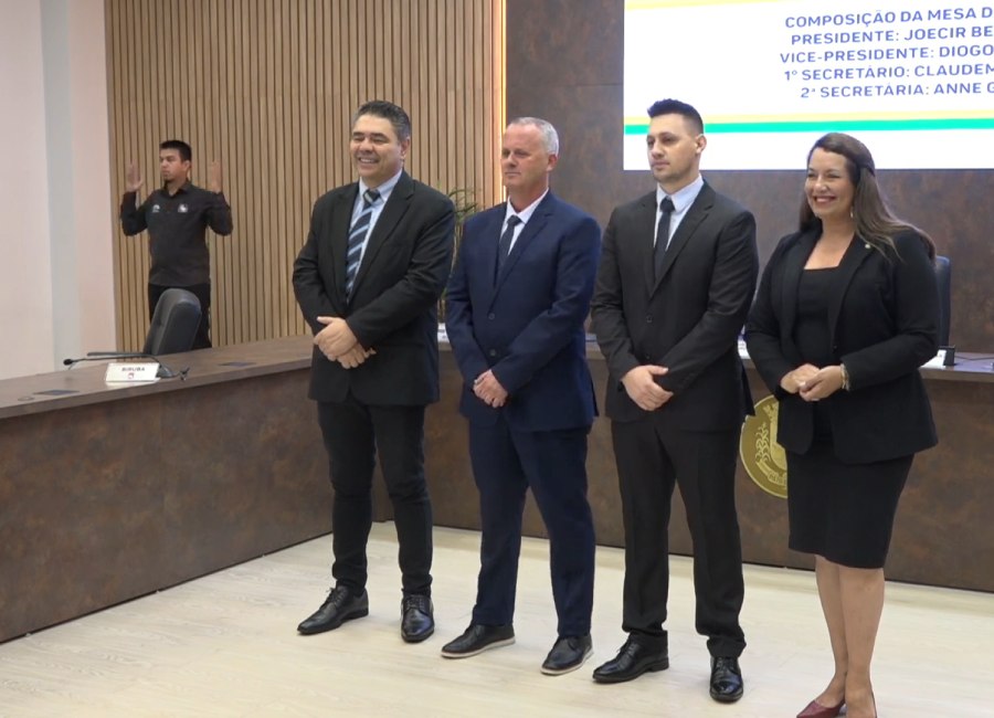 Na sequência da sessão, foi realizado o chamamento dos vereadores eleitos em 16 de dezembro de 2025 para a assinatura do termo de posse, que oficializou a condução dos trabalhos legislativos em 2026. A vereadora Anne Gomes (PSD) foi convidada a ocupar a tribuna como segunda secretária, seguida do vereador Claudemir Zanco (PL), eleito primeiro secretário, e do vice-presidente Diogo Grando (PRD), que assinou o termo de posse.