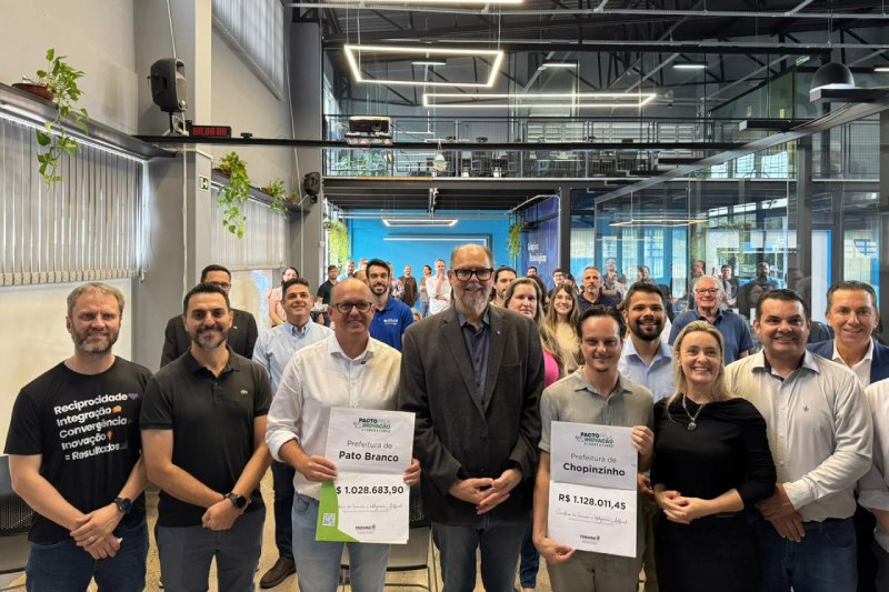 O Governo do Estado, por meio da Secretaria da Inovação e Inteligência Artificial (SEIA), repassou nesta terça-feira (24) recursos do programa Pacto Pela Inovação e Fundo a Fundo para quatro municípios da região Sudoeste: Pato Branco, Chopinzinho, Francisco Beltrão e Realeza. O investimento total destinado às quatro cidades soma R$ 4.445.827,43, reforçando a estratégia estadual de descentralização de recursos para ciência, tecnologia e inovação. O Pacto Pela Inovação e Fundo a Fundo contemplou 48 municípios paranaenses, com um investimento total de R$ 55 milhões.