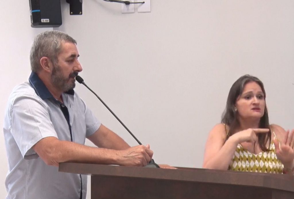 Durante sessão legislativa, a senhora Aline Brancalione, presidente da Associação dos Surdos de Pato Branco, participou como convidada do vereador Alexandre Zocchi, por meio do Requerimento nº 180/2026. A participação teve como tema central a inclusão de pessoas com deficiência no mercado de trabalho, com destaque para as barreiras enfrentadas por pessoas surdas. A convidada teve 15 minutos para apresentação e mais 15 minutos destinados a questionamentos dos vereadores. Durante sua fala, Aline contou com o apoio do intérprete André, responsável por interpretar sua comunicação em Língua Brasileira de Sinais (Libras). Logo no início de sua apresentação, Aline realizou uma audiodescrição, prática importante para acessibilidade, descrevendo suas características físicas e vestimenta: cabelos curtos castanhos, olhos castanhos, pele clara e uso de um vestido na cor mostarda com detalhes brancos.