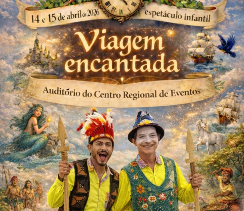 A Prefeitura de Pato Branco, por meio da Secretaria Municipal de Educação e Cultura, promove nos dias 14 e 15 de abril, no auditório do Centro Regional de Eventos, junto ao Departamento Municipal de Cultura, o espetáculo infantil “Viagem Encantada”. O evento é gratuito e será realizado em dois horários: às 9h e às 14h. “Viagem Encantada” é um espetáculo infantil escrito e dirigido por Vilmar Mazzetto, da Mazzetto Produções Artísticas. A peça apresenta os personagens Tico e Teco, dois viajantes contadores de histórias que convidam as crianças para uma jornada pelo Brasil, explorando a diversidade cultural, o folclore, as festas populares e momentos importantes da nossa história.