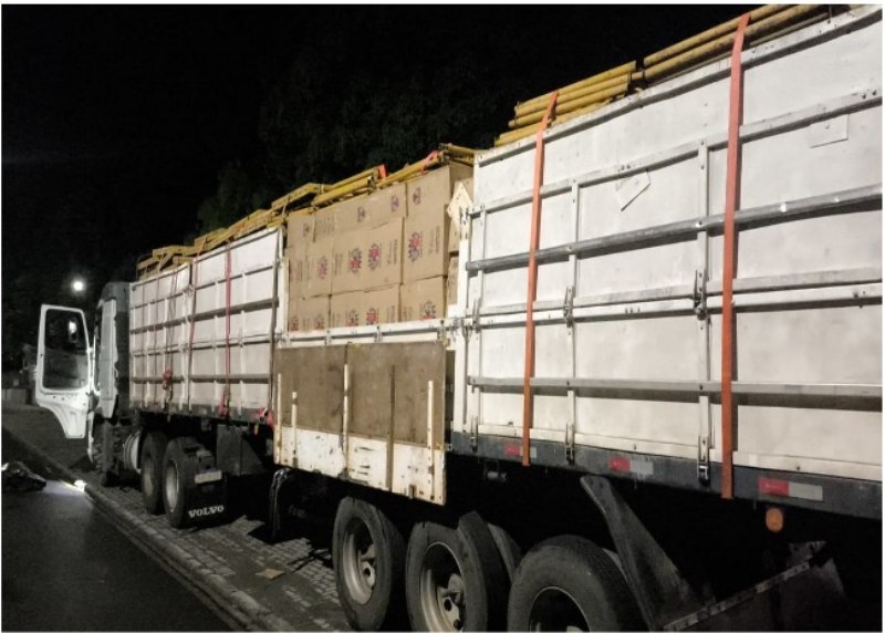Já no bairro São Cristóvão, durante a Operação Cidade Segura, a equipe da ROTAM realizou a apreensão de uma carga de cigarros contrabandeados na rodovia PRC-158, no trevo de acesso ao município. Os policiais abordaram um caminhão trator acoplado a um semirreboque. O condutor, de nacionalidade estrangeira, informou inicialmente que transportava painéis modulares para construção civil. No entanto, durante a vistoria, os agentes visualizaram caixas de cigarros escondidas no compartimento de carga.