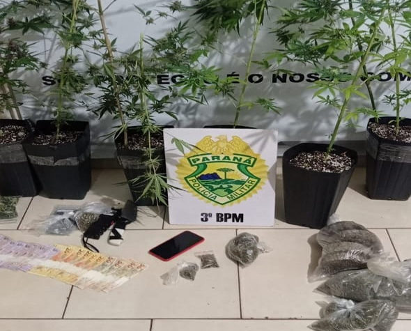 Segunda-feira (15), policiais militares do 3º BPM em patrulhamento por um bairro no município de Pato Branco, apreenderam oito pés...