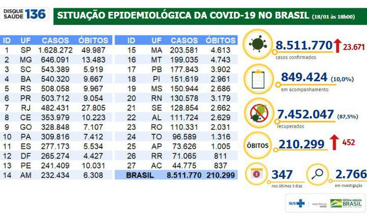 O Brasil passou das 210 mil mortes ocasionadas pela pandemia do novo coronavírus. Nas últimas 24 horas, as autoridades de...