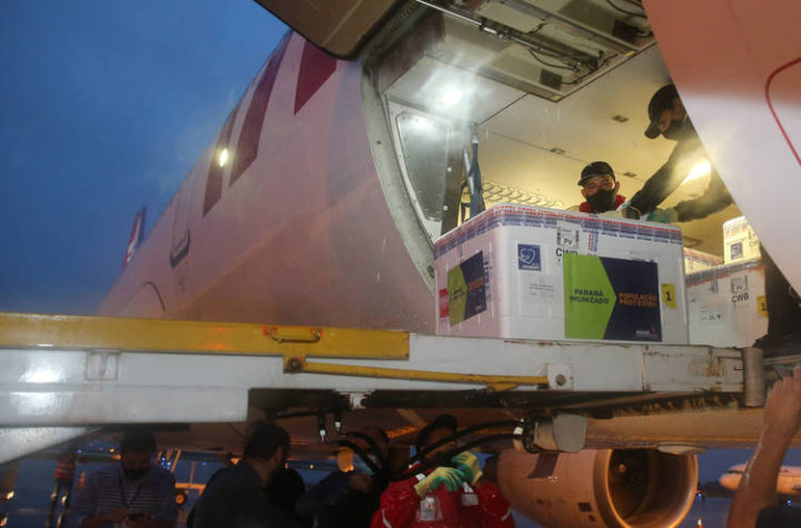 A vacina contra a Covid-19 já está em solo paranaense. O avião da Latam número 3439, que trouxe as primeiras...
