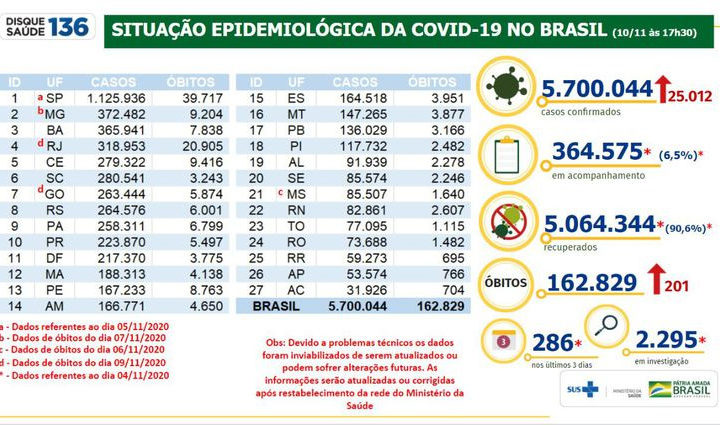 O Brasil passou da marca de 5,7 milhões de casos de covid-19. De acordo com balanço divulgado na noite desta...