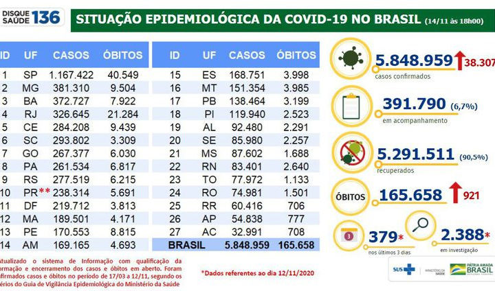 A Secretaria de Estado da Saúde confirma neste sábado (14), 575 novos casos e 03 óbitos pela infecção causada pelo...