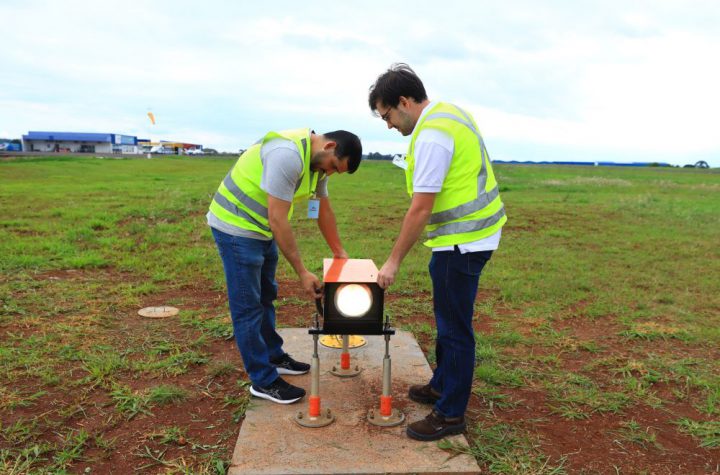 O Indicador de Percurso de Aproximação de Precisão, o PAPI (Precision Approach Path Indicator), do Aeroporto Regional de Pato Branco -...