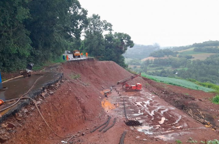 O Departamento de Estradas de Rodagem do Paraná (DER/PR) está realizando os trabalhos de terraplanagem e execução do muro de...