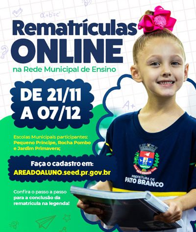 A Prefeitura de Pato Branco está iniciando neste ano um projeto piloto para realização de rematrículas na Rede Municipal de...