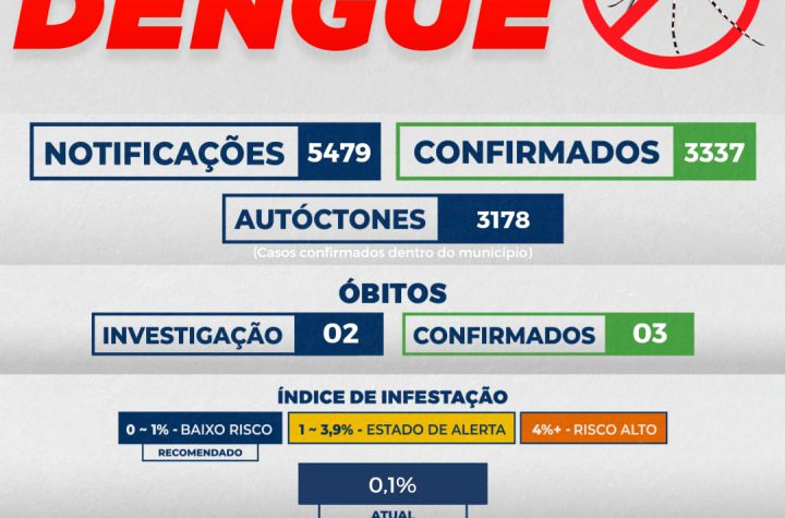 Boletim da Secretaria de Saúde informa que, a cidade Pato Branco continua risco alto para dengue. O índice de infestação...