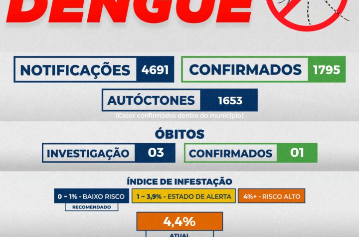 Em novo Boletim a Secretaria de Saúde informa que, a cidade Pato Branco continua risco alto para dengue. O índice...