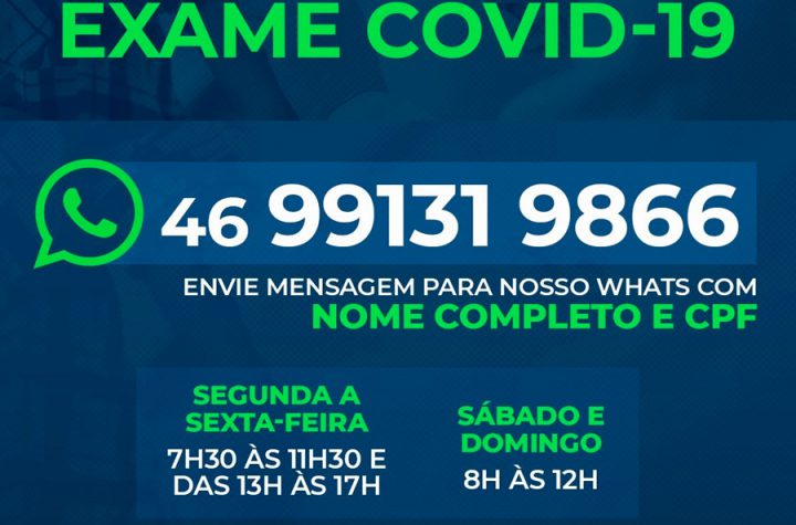 Você pode solicitar o resultado do exame de covid-19 pelo WhatsApp! Envie o seu nome completo e o número do...