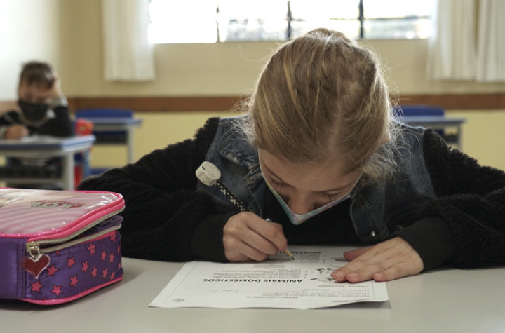 Os estudantes Maria Valentina Dalolmo, da escola Lions Clube, Julia Caldato Kadlobiski, do Vila Izabel, e Pedro Luca Loregian, do...