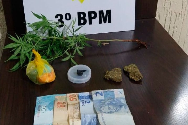 A PM abordou um veículo VW/Gol no bairro Menino Deus e com passageiro localizou 0,6 grama de substância análoga à...