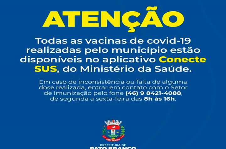 A equipe de Imunização orienta que caso alguma dose da vacina contra a covid-19 não apareça no aplicativo Conecte SUS...