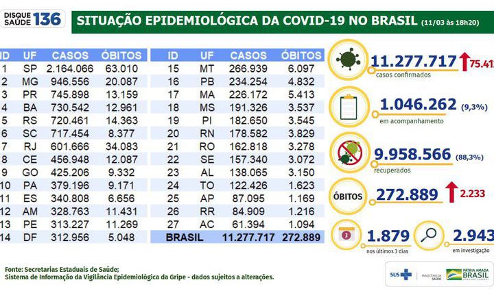 Pelo 2º dia seguido, o Brasil registrou mais de duas mil mortes por covid-19. Segundo balanço do Ministério da Saúde,...
