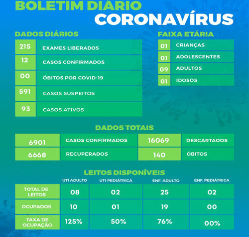 Boletim da Secretaria Municipal de Saúde informa o registro de novos em Pato Branco. De 6.889 para 6.901 casos de Covid-19, 140 óbitos,...