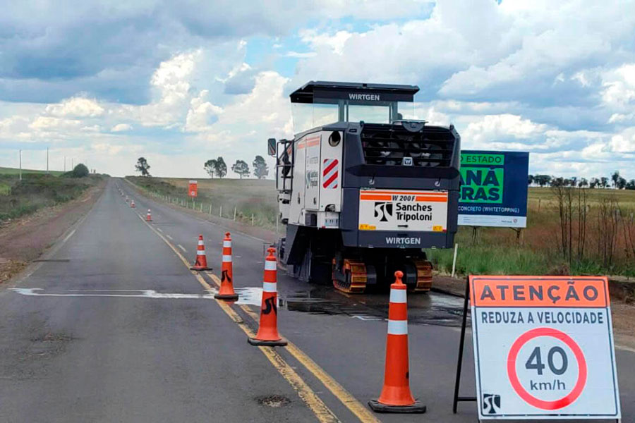 Atualmente, estão em execução a fresagem do pavimento na pista de rolamento e a reciclagem do acostamento, deixando ambos prontos para o início da execução das placas de concreto, ainda este mês. A frente de trabalho iniciou as atividades a partir do trevo com a BR-153, próximo à divisa com Santa Catarina.