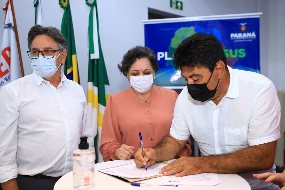 O prefeito de Pato Branco, Robson Cantu, assinou na manhã desta quinta-feira (09), o Termo de Compromisso do PlanificaSUS Paraná, programa do Governo do Estado do Paraná pelo fortalecimento da atenção básica de Saúde junto aos serviços especializados. Também assinaram o documento prefeitos e representantes dos municípios da 7ª Regional de Saúde, durante apresentação do programa no auditório da Unidep, em Pato Branco.