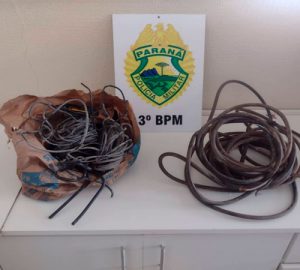 Na data de 23 de janeiro, após solicitação via Central de Operações, que teria um homem suspeito em praticar ilícitos rondando algumas casas do bairro, de imediato a equipe policial realizou diligência e logrou êxito na abordagem a um masculino (21), que estava com aproximadamente 55 metros de fio.