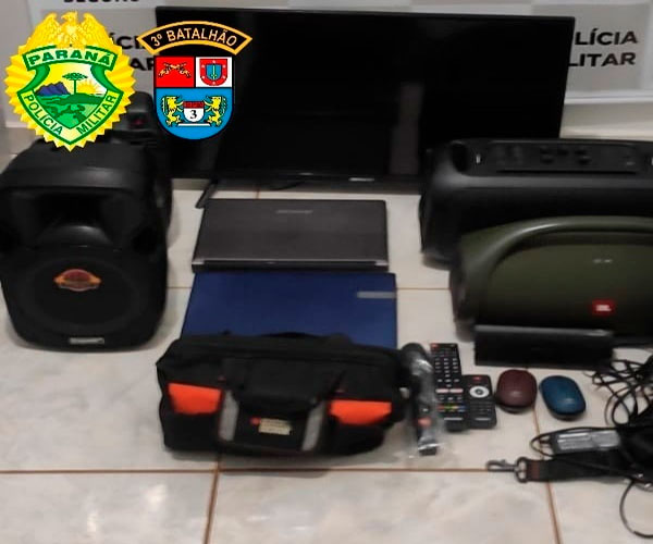Policiais militares recuperaram vários objetos eletrônicos e de sonorização furtados na Escola Municipal de Honório Serpa e realizaram a prisão de um indivíduo. No município de Itapejara d’Oeste, um masculino foi detido após furtar fios de uma construção.
