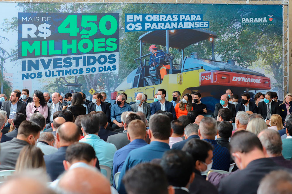 “Hoje é um dia muito importante para o Paraná. Estamos transformando em realidade um projeto ambicioso e que está dentro do planejamento estratégico do Estado, que é de executar investimentos perto da casa dos paranaenses. Serão obras e aquisições para as áreas da saúde, educação, ação social e, principalmente, para impulsionar a economia dos municípios”, destacou Ratinho Junior.