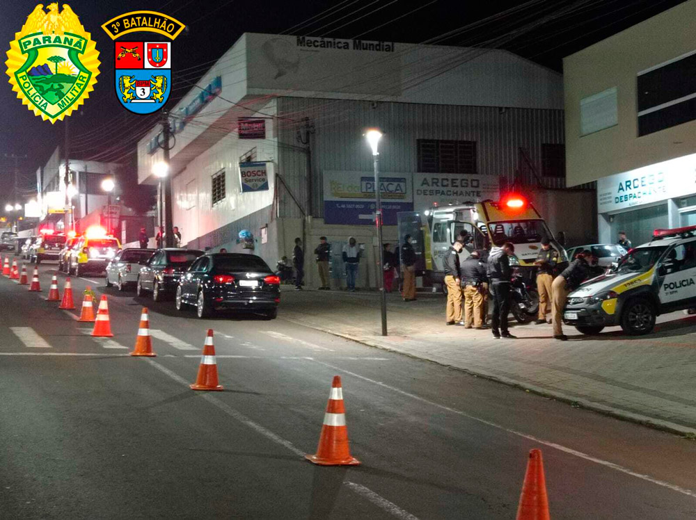 Equipes policiais do 3º Batalhão de Polícia Militar, pertencente ao 5º Comando Regional de Polícia Militar, realizaram operação de fiscalização de trânsito na área central da cidade de Pato Branco e em alusão ao Movimento Maio Amarelo, que neste ano tem como tema “Juntos Salvamos Vidas”. As ações foram realizadas em pontos estratégicos da cidade, ao longo da Tupi, onde foram abordadas mais de 191 pessoas, 2 condutores detidos por embriaguez ao volante. Foram abordados mais de 103 veículos, entre carros e motocicletas, 13 veículos removidos ao pátio, realizados 38 testes de bafômetro e aplicadas 42 notificações de trânsito cabíveis.