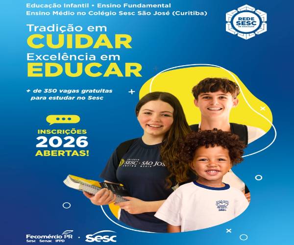 O Sesc Paraná está com inscrições abertas para o processo seletivo de vagas gratuitas para turmas da Educação Infantil, Ensino Fundamental e Ensino Médio no ano letivo de 2026. São 352 vagas gratuitas oferecidas por meio do Programa de Comprometimento e Gratuidade (PCG), que tem como objetivo ampliar o acesso à educação de qualidade para o seu público preferencial – trabalhadores do comércio de bens, serviços e turismo e seus dependentes. Para além desse público, as vagas também são destinadas a estudantes da educação básica que atendam aos critérios estabelecidos nos editais.