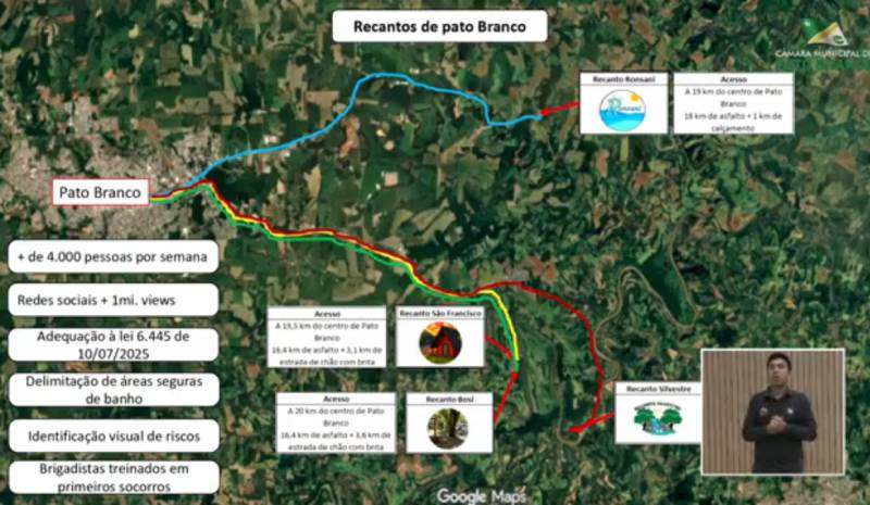 Ao final, o vereador Alexandre Zoche reforçou a importância de colocar os recantos no radar da população de Pato Branco e da região. Ele destacou que o turismo movimenta a economia local, atrai visitantes, gera recursos e contribui para o fortalecimento do município.